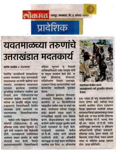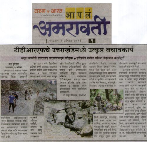 The Target Disaster Response Force have earned the badge of respect and proud. Due to the tremondous activities and operation done by TDRF, the TDRF got good amount of media and news paper coverage all over the state of Maharashtra and till date TDRF is performing great work and good contribution in the society.